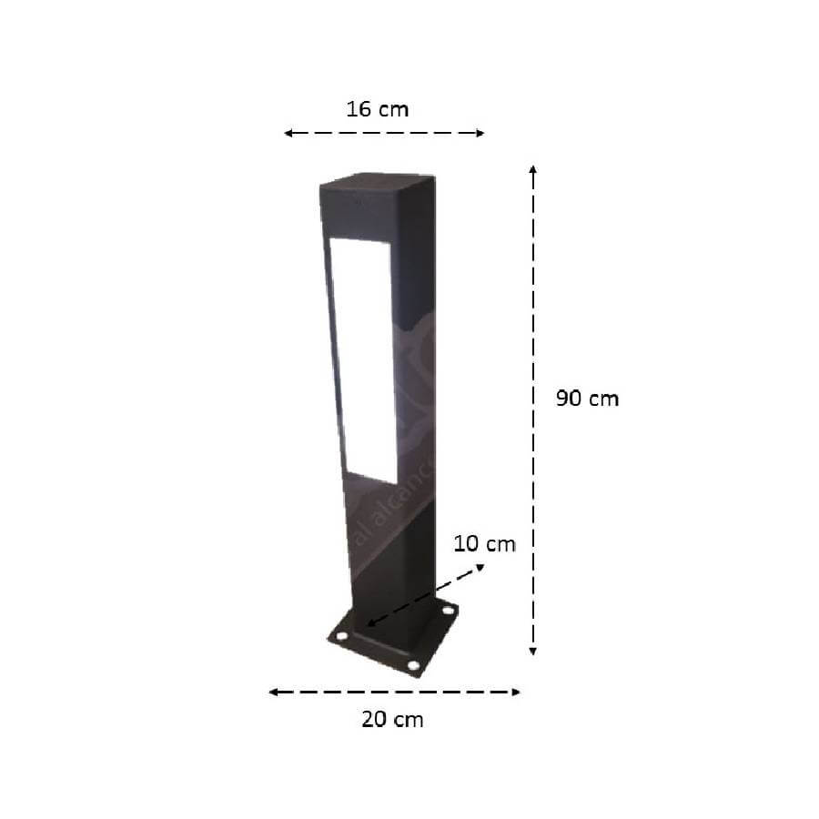 Bolardo Ecatepec fabricado en acero recubierto de pintura en polvo con proceso electrostático. Incluye luminaria LED